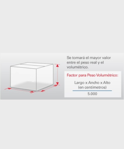 (Se usa el mayor, ya sea el peso real o volumétrico)