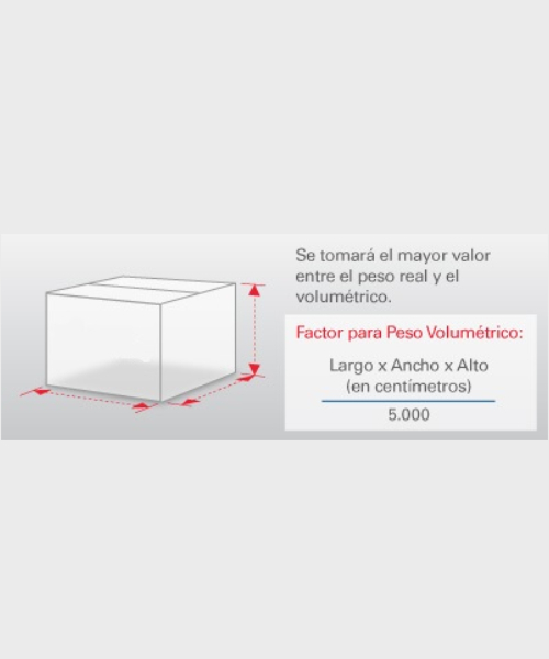 le recordamos la importancia de revisar las medidas de su paquete para verificar el peso ya que estafeta considera peso volumétrico y peso real lo que sea mayor. Usted mismo puede calcular el peso volumétrico con la sigueinte formula: (Largo x Ancho x Alto ) / 5000